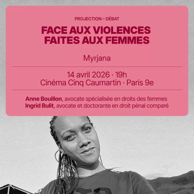 Projection du documentaire Myrjana de Stéphane Ducandas, primé par le jury Epsilon Mélia lors du Festival du Film Social 2025, suivie d’un échange en présence d’Anne Bouillon, avocate engagée dans la défense des droits des femmes, et Ingrid Bulit, avocate au barreau de Madrid, animé par Fabiana Spoletini, formatrice, intervenante GAP et écoutante au 3919, ligne d’écoute nationale contre les violences faites aux femmes.